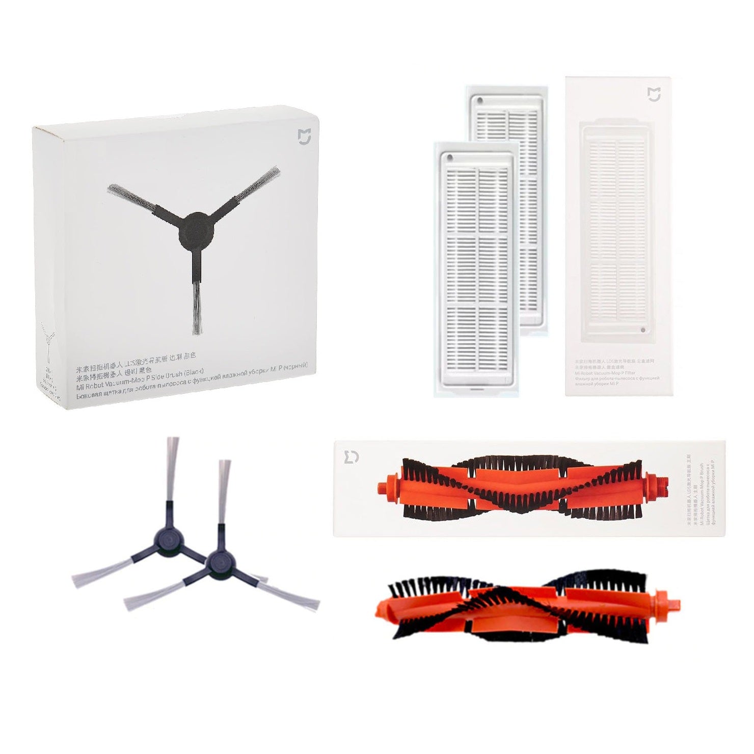 Set 3 accesorii originale aspirator Xiaomi Mi Robot Vacuum Mop-P / Mop Pro, filtru Hepa x 2 buc, perie principala x 1 buc, perie laterala x 2 buc